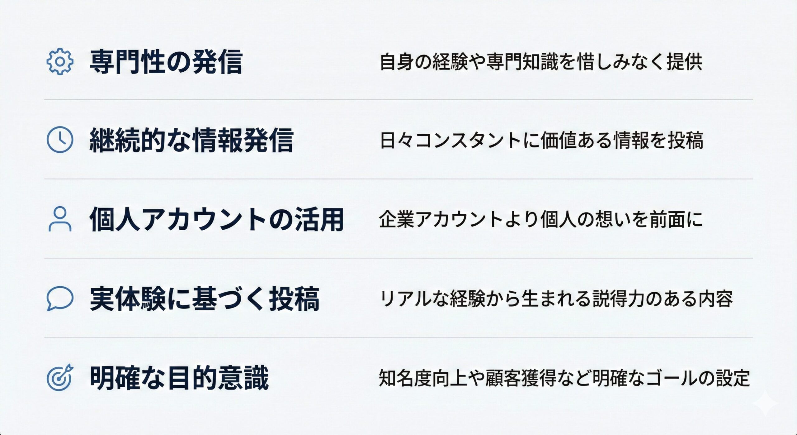 SNSのプロフィールは、あなたの「デジタルの名刺」です。見込み客があなたのプロフィールを見たときに、「この人は誰で、自分にどんな価値を提供してくれる専門家なのか」が一目でわかるように作り込みましょう。