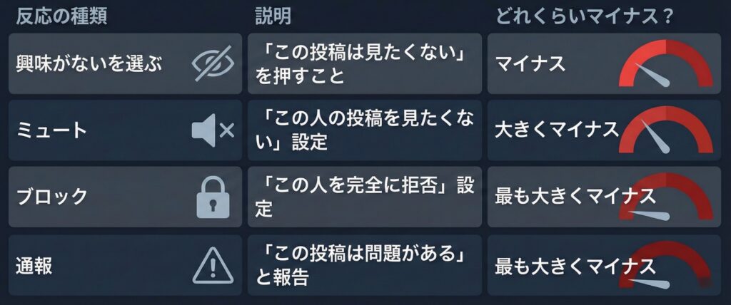 逆に、こんな反応をされそうな投稿は、点数がマイナスされます。